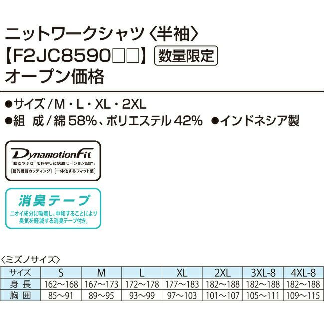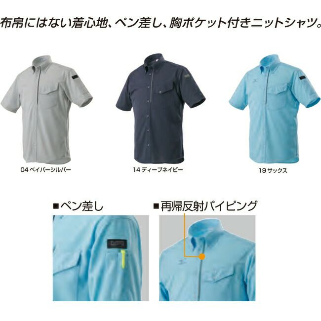 ペン差し 胸ポケット 付き スポーツ メーカー ならではの 着心地 と 肌触り 【送料無料】 ミズノ mizun F2JC8590 ニット ワーク シャツ 半袖
