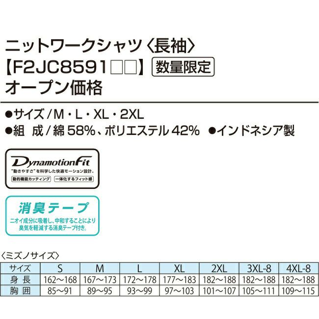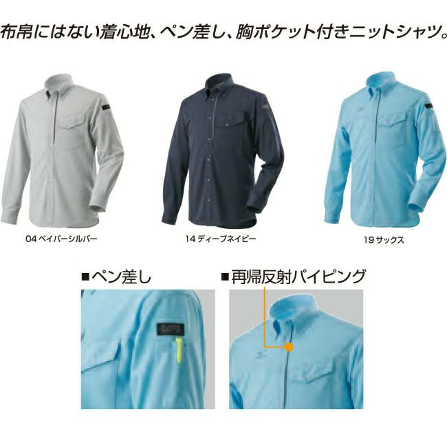 ペン差し 胸ポケット 付き スポーツ メーカー ならではの 着心地 と 肌触り 【送料無料】 ミズノ mizun F2JC8591 ニット ワーク シャツ 長袖