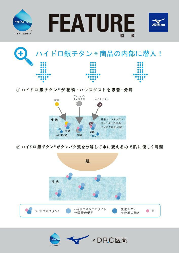 他の画像を見る 花粉 杉 スギ 汗 の ニオイ の 元 となる タンパク質 を 分解 する 、 医師 の 発想 で 生まれた 素材 【送料無料】 ミズノ mizun F2JA9184 ハイドロ銀チタン ポロシャツ 半袖 販売価格 ¥ 6,490 税込 在庫切れ カートに入れる お気に入りに登録する