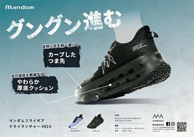 他の画像を見る 自然と足を前へ運ぶカーブしたつま先 足の負担を軽減するやわらか厚底クッション 丸五 マンダムフライギアドライランチャー#014 販売価格 ¥ 3,950 税込 カートに入れる お気に入りに登録する
