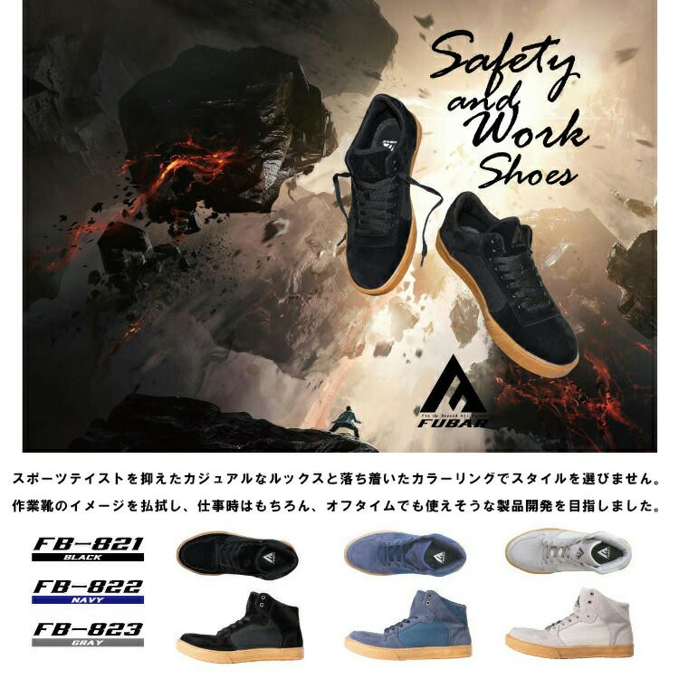 メンズ レディース 対応 デニム や チノパン に 合わせやすい おしゃれ な 安全靴 フーバー 安全靴 作業靴 【FB-82】シリーズ ハイカット ワークシューズ
