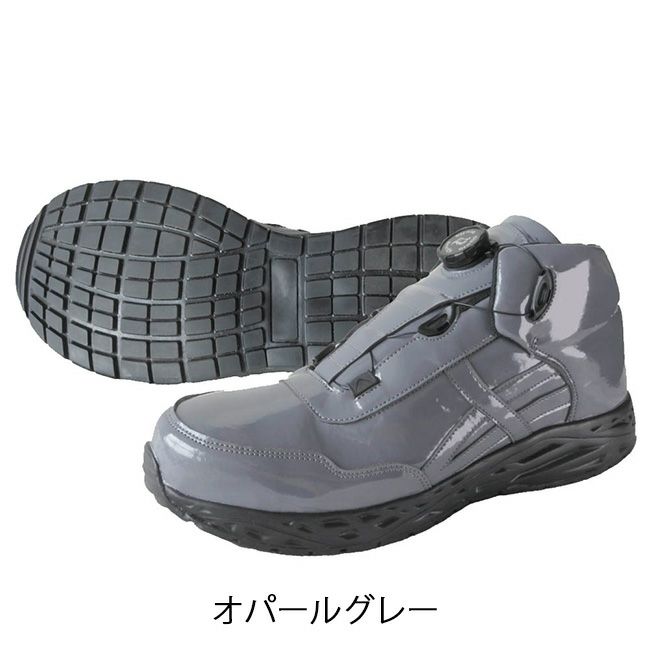 富士手袋の「55-46 ダイヤル式エナメル安全スニーカー」は、足を締め付けずにぴったりフィットするダイヤル式調整機構を採用。