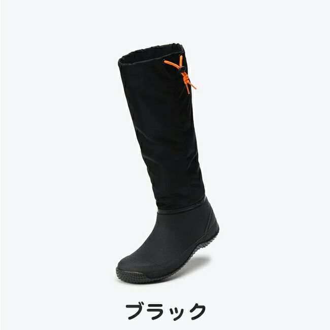 長靴素材(約10cm丈)と長尺フードを組み合わせた機能派ワークブーツ。