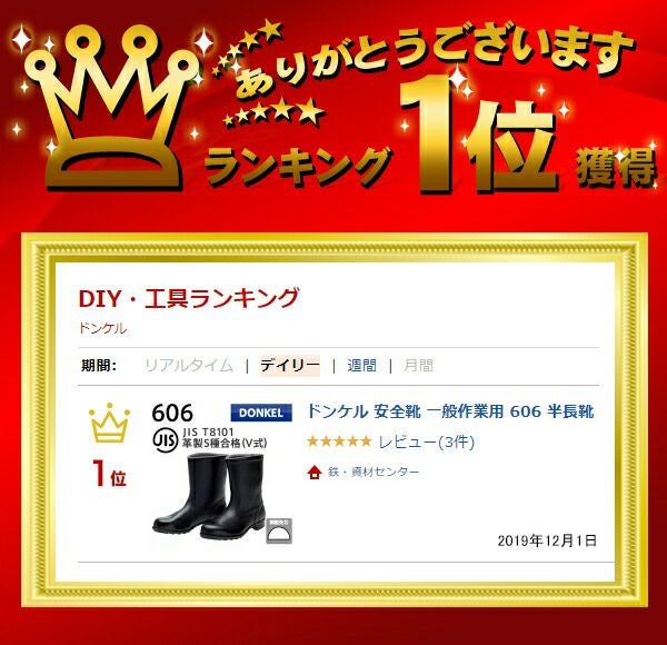 JIS T8101 革製S種合格 鋼芯 幅広い用途で活躍するスタンダードタイプ ドンケル 安全靴 一般作業用 606 半長靴