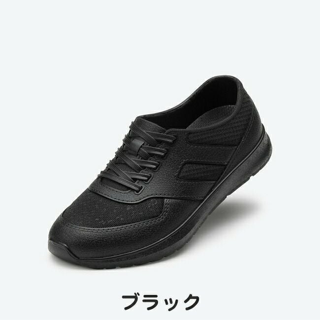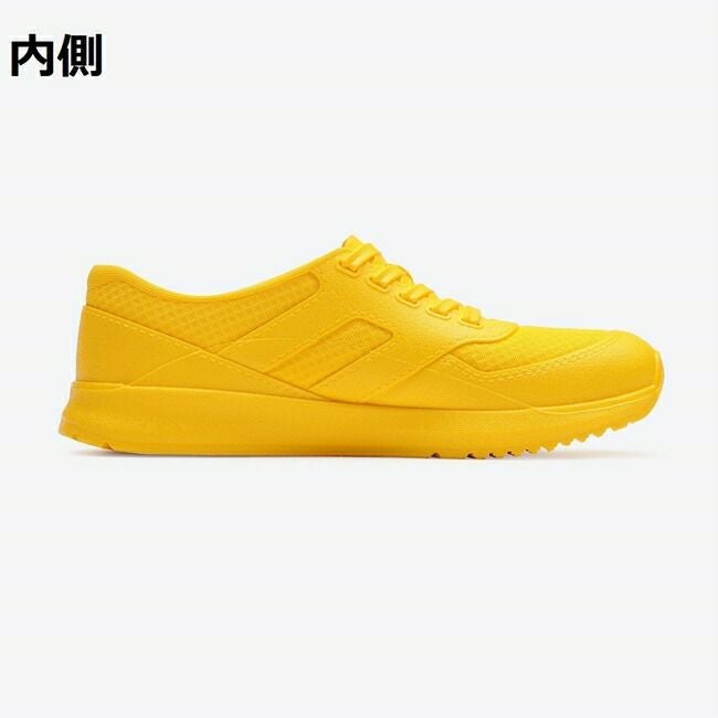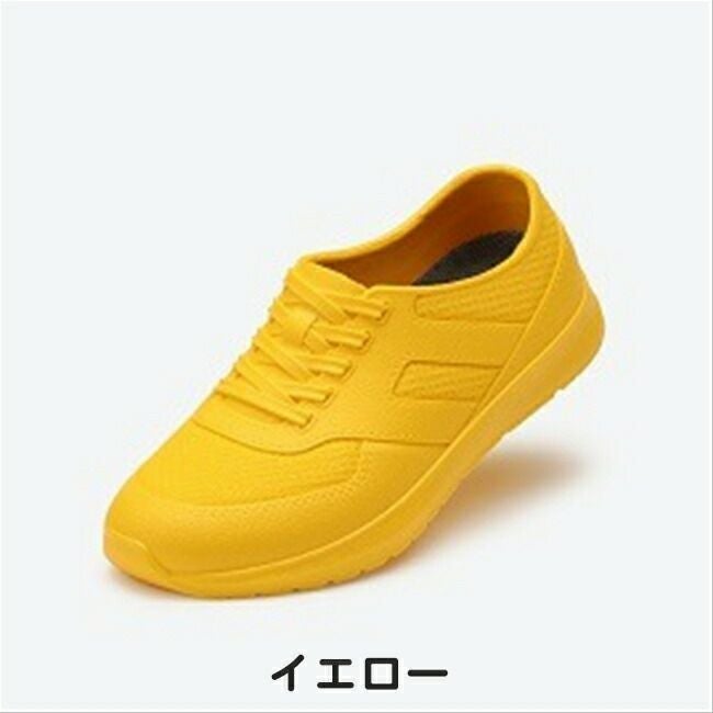 アッパーに靴ひもやメッシュ模様を施す事で、スニーカーのような見た目に仕上げています。天気が崩れそうな日にも見た目を気にせず雨対策が出来ます。