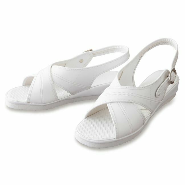 土踏まず部分にアーチ付き+クロスデザイン。 前ズレを防止する前部スリット入り。 AZ-861397 アイトス ナースサンダル