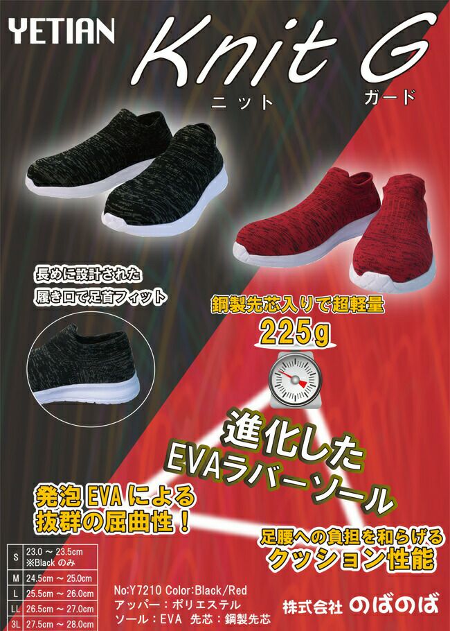軽量 で 足首 に フィット する ニット 生地 の 安全靴 メンズ レディース 男性用 女性用 おしゃれ かっこいい かわいい 安全靴 イエテン Y7210 ニットガード