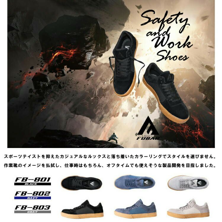 メンズ レディース 対応 デニム や チノパン に 合わせやすい おしゃれ な 安全靴 フーバー 安全靴 作業靴 【FB-80】シリーズ ローカット ワークシューズ