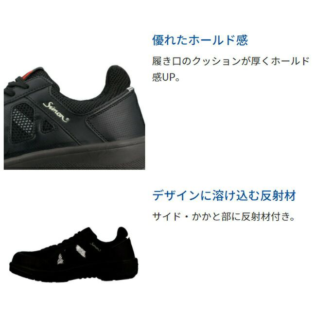 広範囲に反射する耐滑安全スニーカー 紐タイプ シモン 安全靴 プロスニーカー スリッポン KL517