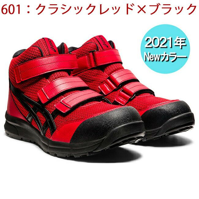 メッシュを採用したハイカットタイプ アシックス asics 安全靴 作業靴 ウィンジョブ FCP203 601 クラシックレッド × ブラック