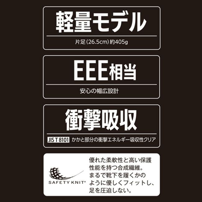 帯磁性と断熱性を兼ね備えた、軽量グラスファイバー合成樹脂先芯。