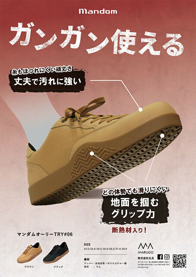 ソールにはワークシューズのノウハウを活かした滑りにくいソールを採用。