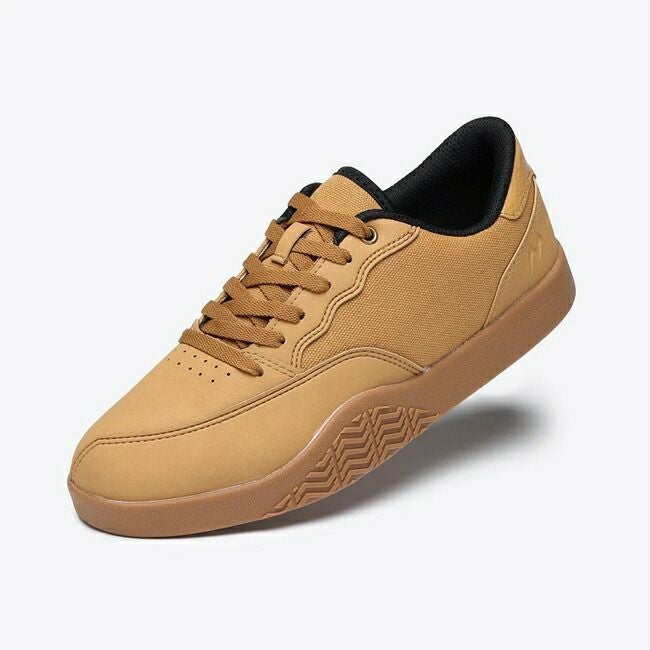 ソールにはワークシューズでも使用している滑りにくい底意匠を採用。デッキだけでなく、すべりやすい路面でもしっかりグリップします。アッパーはトリックでダメージを受けやすい箇所を補強したデザインとすることで、靴の強度を高めています。
