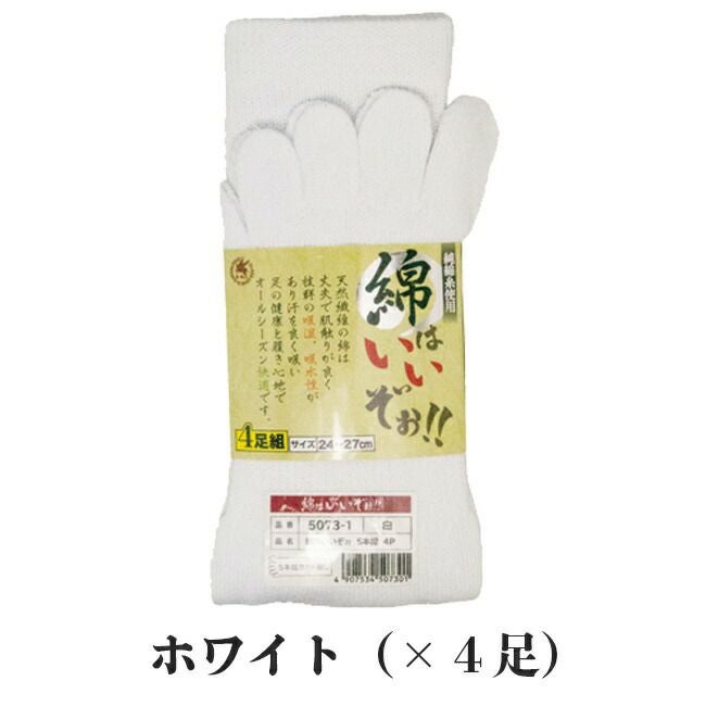 5本指ソックス 綿はいいぞぉ 富士手袋 5073 4足組