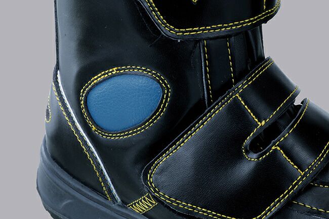 外サイドに配置されたワンポイントのクッション材は、くるぶしを作業中の衝撃から保護します。