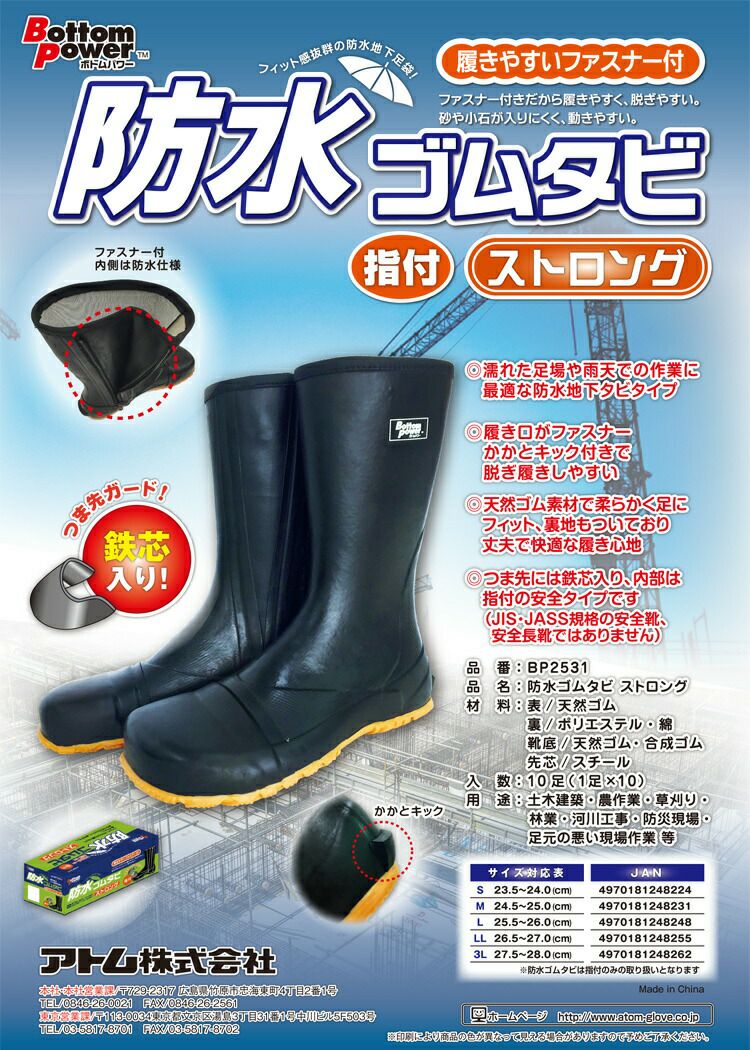 アトム 防水ゴムタビ 鉄芯入り ファスナータイプ
