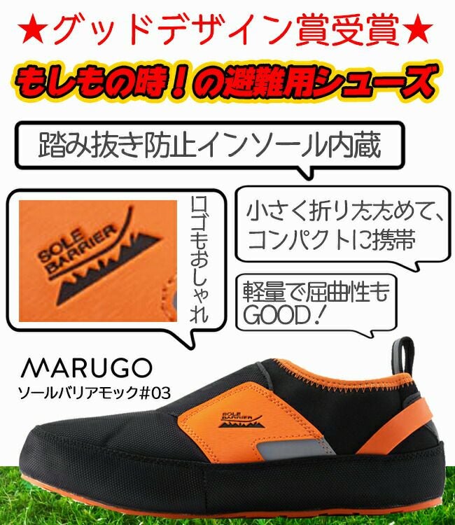 他の画像を見る ガラスや釘などの危険物から足裏を保護!災害避難時に効果を発揮! 災害 対策用 非常用 折り畳みシューズ 丸五 ソールバリアモック #03 踏抜き防止 板入り ※ 先芯なし 販売価格 ¥ 4,616 税込 カートに入れる お気に入りに登録する