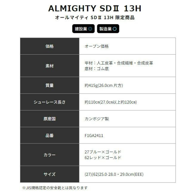他の画像を見る 2023 2023年 限定 数量限定 限定カラー 限定モデル ミズノ mizuno 安全靴 ALMIGHTY HW11L 【F1GA2313】 販売価格 ¥ 19,800 税込 在庫切れ カートに入れる お気に入りに登録する