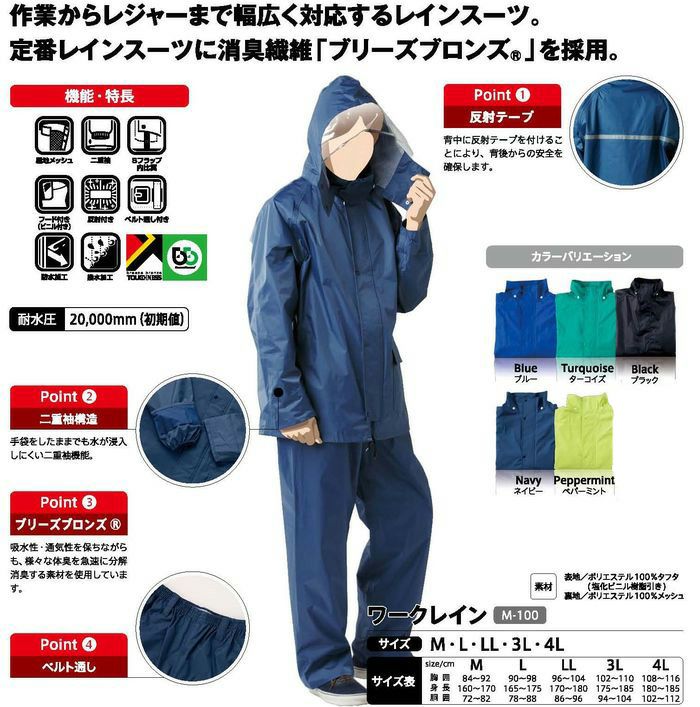 他の画像を見る 臭いを分解する消臭繊維「ブリーズブロンズ」使用。 【 耐水圧20000mm 】 レインウエア コヤナギ ワークレイン 【 M-100 】 販売価格 ¥ 3,917 税込 カートに入れる お気に入りに登録する