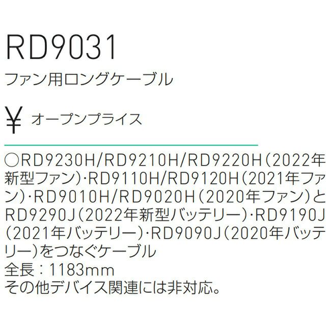 他の画像を見る サンエス SUN-S 空調風神服 用 ファン ケーブル 2022 サンエス SUN-S 【RD9031】 空調風神服 用 ファン用 ロングケーブル 2022 販売価格 ¥ 800 税込 カートに入れる お気に入りに登録する