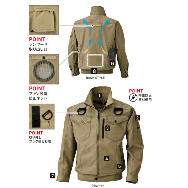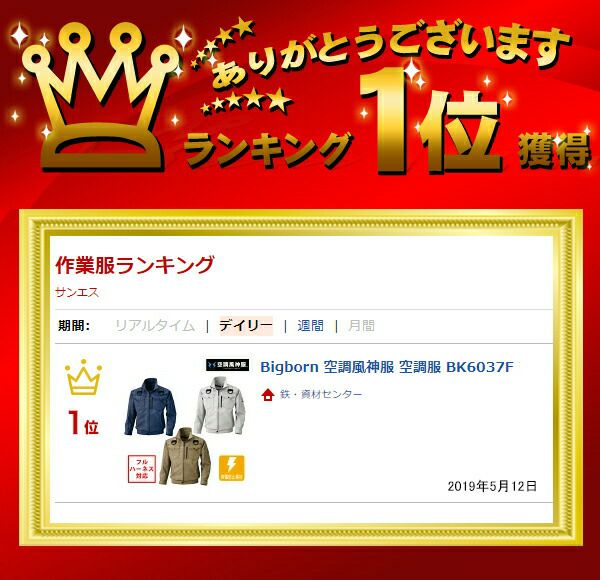 他の画像を見る フルハーネス 対応 帯電 防止 素材 で 高所 作業 も 快適 に 【2022年ファン&バッテリーセット付】Bigborn 空調風神服BK6037F フルハーネス 対応 長袖 ジャケット 販売価格 ¥ 25,000 税込 〜 販売価格 ¥ 税込 詳細を見る お気に入りに登録する