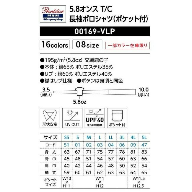 他の画像を見る ポロシャツシリーズの定番を長袖仕様に 5.8オンス TC 長袖ポロシャツ(ポケット付) Printstar プリントスター 00169 販売価格 ¥ 1,448 税込 〜 販売価格 ¥ 税込 詳細を見る お気に入りに登録する