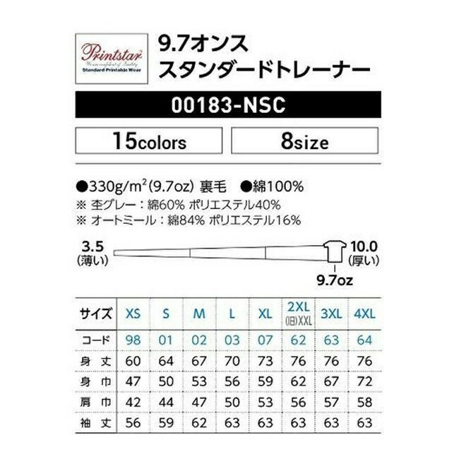 他の画像を見る 色とサイズが豊富なスタンダードタイプ 9.7オンス スタンダード トレーナー Printstar プリントスター 00183 販売価格 ¥ 2,310 税込 〜 販売価格 ¥ 税込 詳細を見る お気に入りに登録する