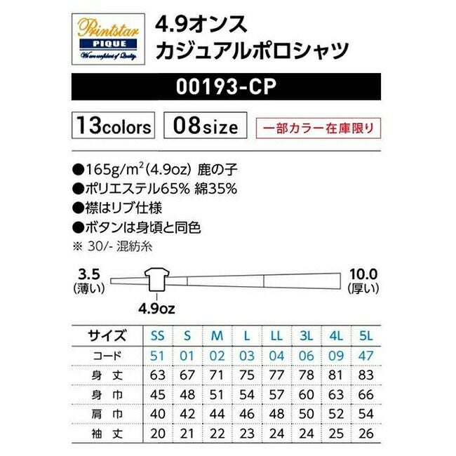 他の画像を見る 袖リブを排除した軽量仕様でミニマムに仕上げた一枚 4.9オンス カジュアルポロシャツ Printstar プリントスター 00193 販売価格 ¥ 1,052 税込 〜 販売価格 ¥ 税込 詳細を見る お気に入りに登録する