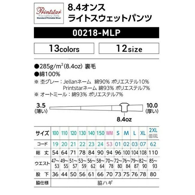 他の画像を見る ワイドすぎない程よいシルエットに注目 8.4オンス ライト スウェット パンツ Printstar プリントスター 00218 販売価格 ¥ 1,900 税込 〜 販売価格 ¥ 税込 詳細を見る お気に入りに登録する