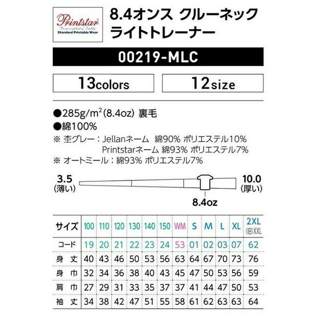 他の画像を見る 薄くて軽い着心地が人気のトレーナー 8.4オンス クルーネック ライト トレーナー Printstar プリントスター 00219 販売価格 ¥ 1,570 税込 〜 販売価格 ¥ 税込 詳細を見る お気に入りに登録する